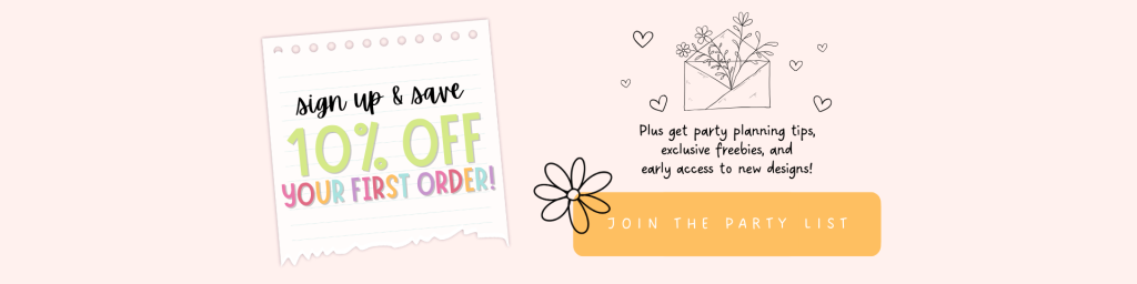 From birthdays to bachelorettes, every design is made with heart, a pop of fun, and a sprinkle of whimsy — because we believe parties should feel personal, joyful, and never overwhelming.